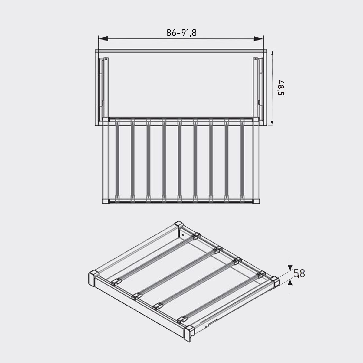 Širina korpusa može da se podešava od 86cm do 91,8cm.
