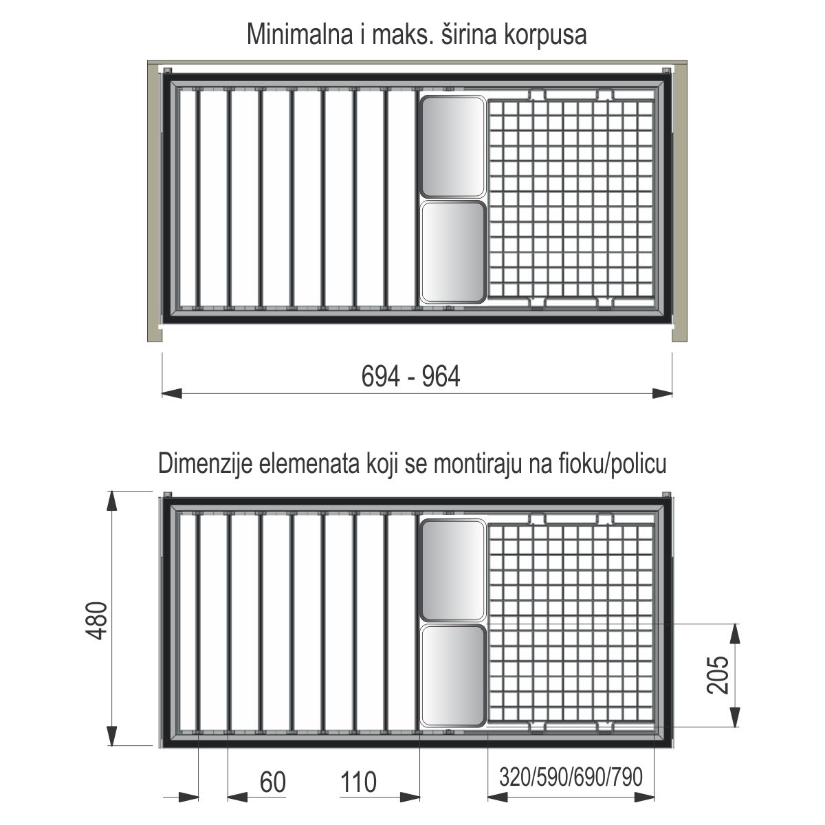 Premium polica se radi na meru a namenjena je za korpuse širine od 694-946mm i dubine min. 500mm.