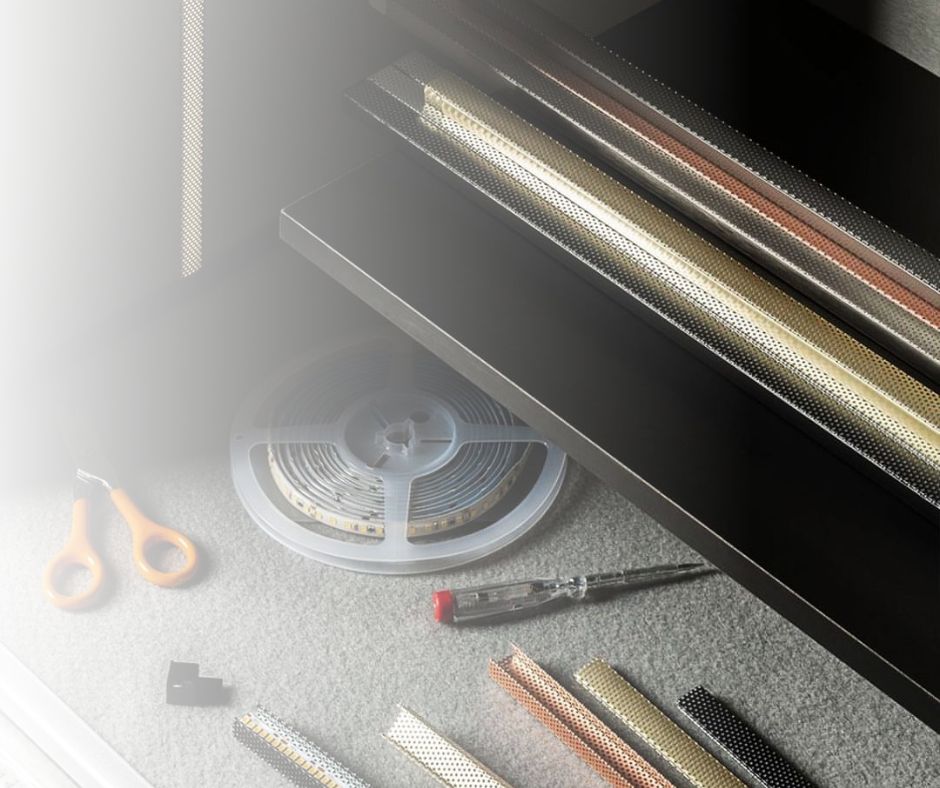 Led profili dostupni su u tri različite obrade: zlato, bakar i crna, a takođe se razlikuju i po načinu raspršivanja svetlosti.
